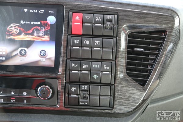 除此之外,这辆JH6还配有独立暖风、驻车电动空调,按键同样集成在中控台,驻车加热器开关设置在制动器操纵杆旁边,躺在卧铺上也可以很方便的操作。