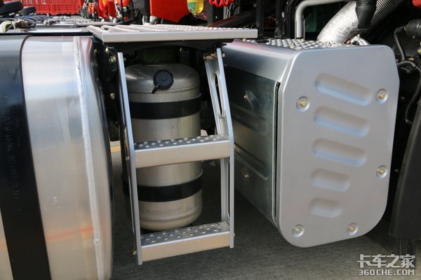 配备800+400升油箱,带有油箱加热功能,并且增加了可视化滤网。小油箱可以在冬天加注-35号柴油,减少燃油开支,油箱采用全铝合金材质,同样为轻量化设计。