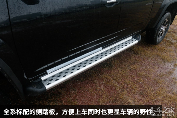 全系标配的侧踏板,虽然会在某种程度上影响车辆的离地间隙,但该车的最小离地间隙也能达到200mm,应付一般的烂路基本没有问题。