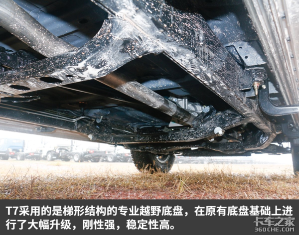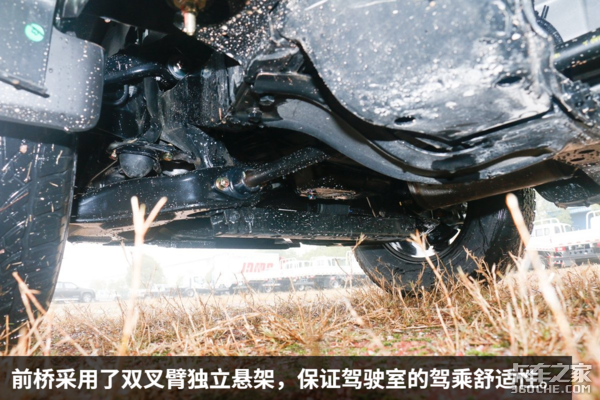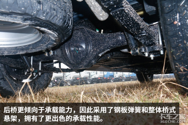 在底盘方面,皮卡车型需要兼顾载人和载货需求,因此在悬架结构上前桥采用了双叉臂独立悬架,保证驾驶室的驾乘舒适性,而后桥更倾向于承载能力,因此采用了钢板弹簧和整体桥式悬架,拥有了更出色的承载性能。
