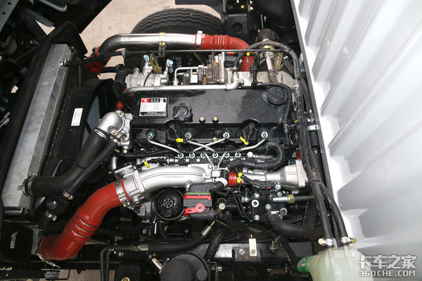 潍柴WP4.1NQ190E61发动机,四缸4.1排量,采用"EGR+DOC+DPF+SCR+ASC"的技术路线达到国六排放标准,最大功率140kW(190马力),最大扭矩680Nm,可谓是轻型机中的大马力代表之一,可更好满足重载及山地运输的动力需求。