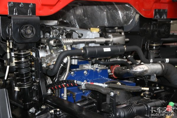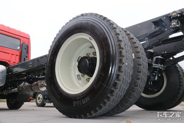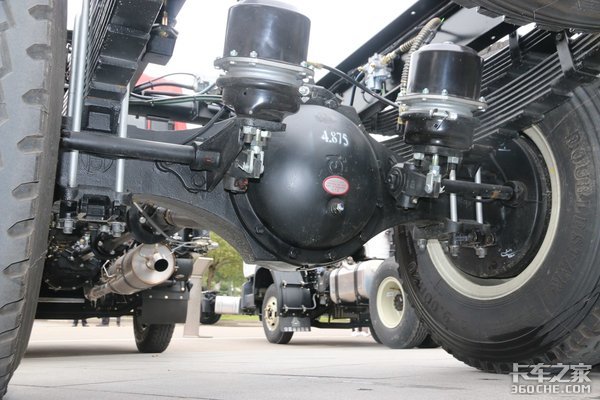 采用3.6吨前桥。配备横向稳定杆,这在中卡领域比较少见,可以减少转弯时的车身侧倾,提升行驶稳定性;后桥为8吨级,速比4.875。