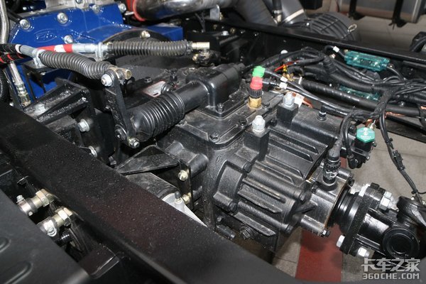 传动系统匹配法士特8JS85TE-C八挡变速箱,主幅箱结构,双中间轴设计,带同步器。输入扭矩850牛米,头挡10.36,八挡速比0.79。8JS85TE相信很多用户都已经非常熟悉,而C据说是经过较大升级的产品。