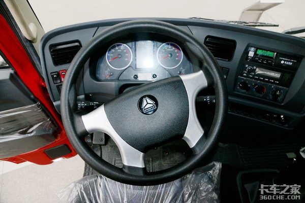 在舒适性方面,展车驾驶室采用弹簧后悬置,机械减震座椅,有需求的用户可以选装气囊后悬置,气囊减震座椅。