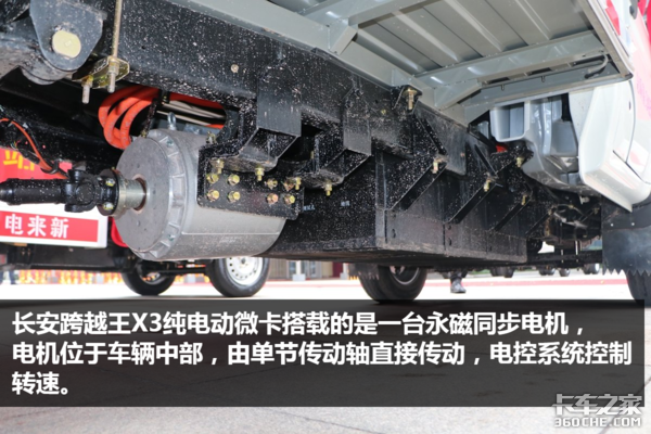 其实,通过对比此前跨越王X3不难发现,纯电动车型在底盘的布局上发生了很大的变化,尤其是电池组的布局以及整车轻量化方面。因为,电机位置靠后,无中间传动轴遮挡,“金贵”的电池组布局于车架内部可以受到更好的保护,而且由于取消了很多内燃机的零部件,整车的重量并不会因为电池组而增加很多。