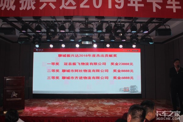 最后本次活动还公布了聊城振兴达2018年度杰出贡献奖,分别是一等奖获得者冠县振飞物流有限公司,二等奖获得者聊城市阿杜物流有限公司,三等奖获得者聊城市齐进物流有限公司,一二三等奖分别获得23888元,8888元,6888元现金大奖。祝贺上述三家物流公司斩获大奖,希望在2019年能继续辉煌。
