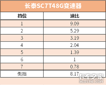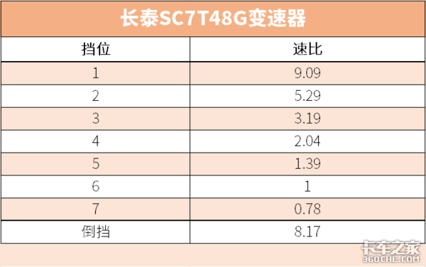 7挡变速器是不是真的难用呢,我们来看看它的各挡传动比,下面以长泰(绍齿)SC7T48G为例。