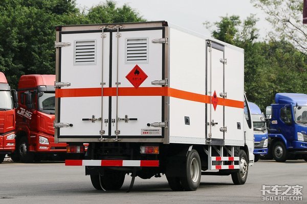 实拍该车属于<易燃气体厢式运输车>,可以运输符合GB 12268-2012的液化石油气、丁烷、丙烷、压缩煤气等产品。货厢尺寸4.23x2.07x1900mm,长度和同级产品相比有优势。除此之外,这款车还可选装单,双侧开门、液压尾板等配置,可以适应更多的装卸货场景。