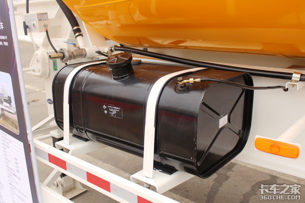 罐体左侧是一个铁质的油箱,专门为搅拌罐的动力系统提供燃料。