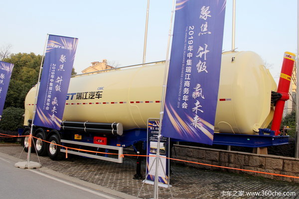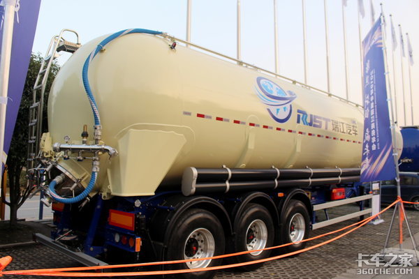 专业做液罐、粉罐半挂车的中集瑞江就有一款引用了欧洲技术的举升粉罐半挂车,这款车的整体工艺、型式、造型以及原材料等方面与欧洲的挂车无异。