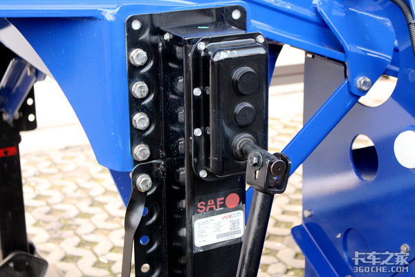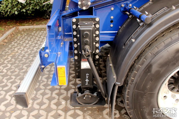 另外,在车架两侧还各有一个阻车器,在车辆停车作业的时候,阻车器能够提供更深一层的保险。