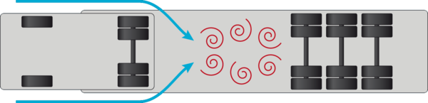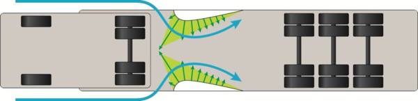 除了侧裙板之外,威伯科还设计了一款挂车尾翼。它和牵引车驾驶室后方的导流罩有些类似,可以改善气流状态,降低油耗。据威伯科测算,使用这款尾翼,在高速状态下车辆的百公里油耗能降低1.1L左右。