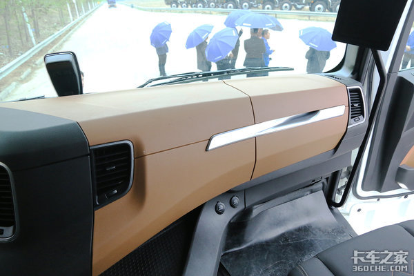 动力方面,我们拍摄的这台车搭载了潍柴430马力发动机,以及法士特和卡特彼勒联合开发的AT变速箱。具体的动力参数以及变速箱型号目前还不知道,这里没有办法给大家展开说。