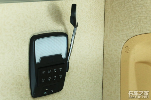 出于安全的考虑,中国的驾驶员在休息的时候习惯将头放在主驾的后面。陕汽也是摸清了中国驾驶员的这一情况,在主驾后面专门设计了一块控制面板,用来控制灯光、天窗以及多媒体系统。可调节的小灯方便休息时开启,同时也不影响驾驶员的视线。