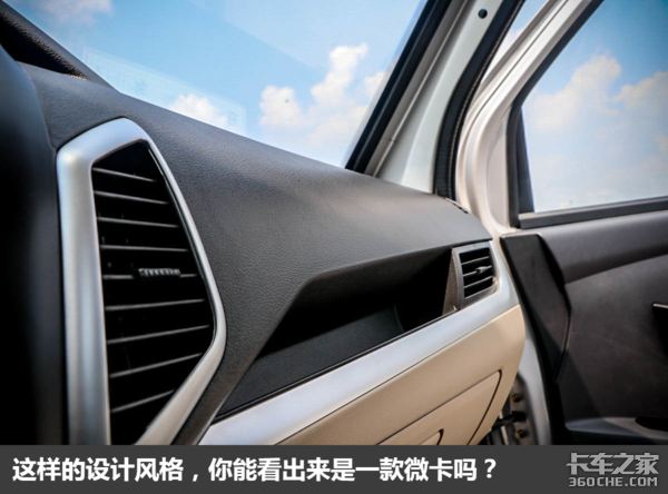 在储物空间方面,由于小轻卡车型驾驶室本身空间的限制,只有从“设计”上着手。因此我们可以看到除了常规的门板、座椅位置设计的储物格之外,在仪表台上也有很多储物设计。虽然不一定能全部用到,但是这样合理的空间设计确比较用心了。