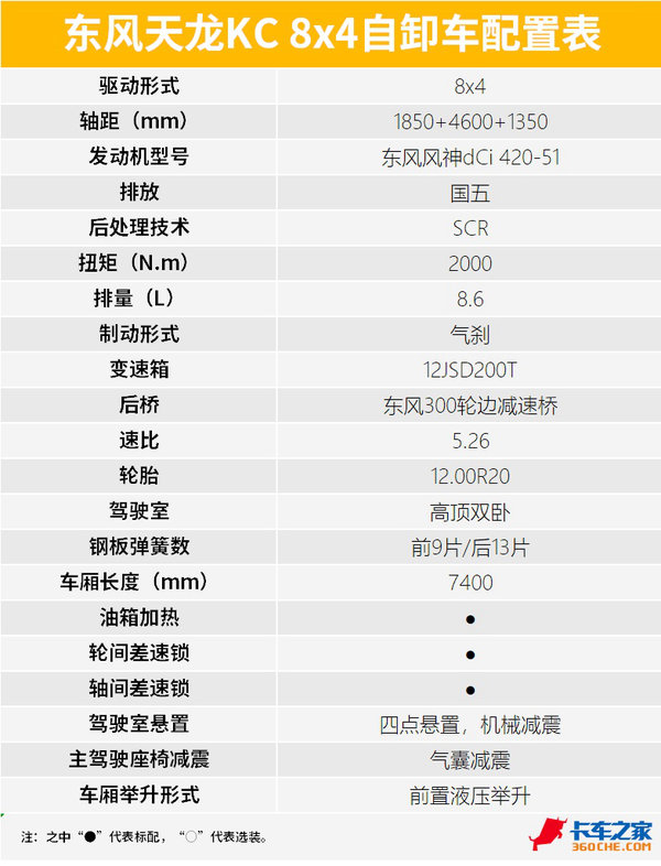 底盘看点:这台天龙KC的底盘配置还是倾向于重载和工地运输,不过也兼顾了一些公路运输的需求,整体来说,这款车就是更适合重载运输,但也能保证基本速度要求的复合型自卸车。