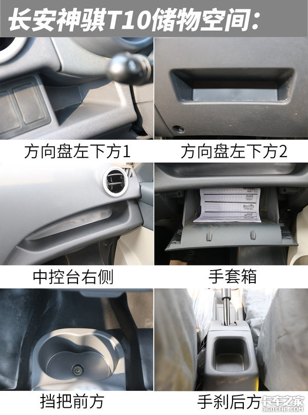 两者的储物空间则相差许多,T20除了车门板和手套箱以外基本没有其他地方。而T10则在此基础上,方向盘左下、档把前、手刹后都增加了储物的地方,把空间利用到了近乎极致。