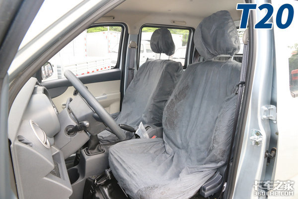 两台车的内饰风格大同小异,都是以灰色为主,控制面板和空调出风口有银色装饰。配置亦是如此,两车都有原厂空调、电动车窗(带一键落窗)等基本舒适性配置。最大差异是T20采用双遮阳板,而T10是单个,副驾驶没有配备。