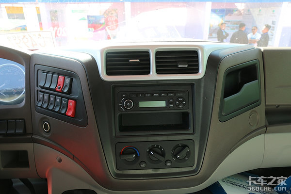虽说是平顶驾驶室,但它内部的空间还是非常可观的,光线通透感很强;主驾驶位采用标准的四幅式方向盘,考虑到实用性和经济性并没有多功能按键。
