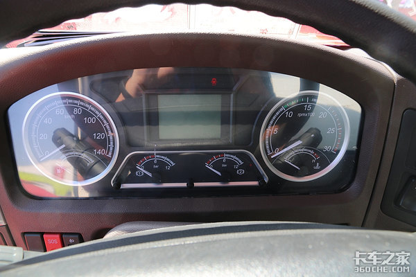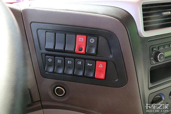 方向盘右下方集合了取力器、DPF再生、驾驶模式切换等开关,而且它的角度是面向驾驶位的,所以操作起来十分方便,也更有利于行车安全。