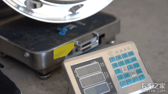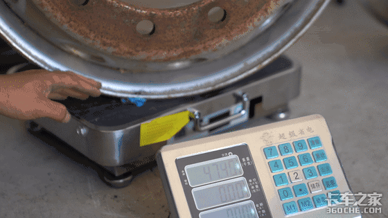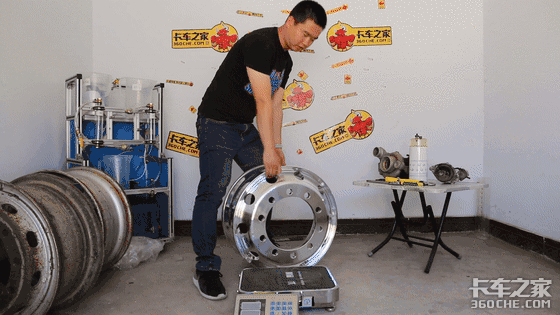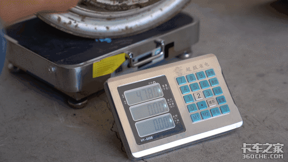 下面开始称重,我们找来一个磅秤,先来测量真空胎所用钢制车轮。