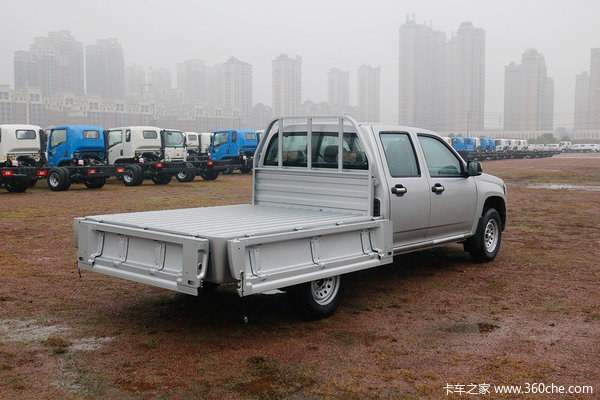 之所以我们常说皮卡的装载能力要比微卡弱,很多时候是因为一般皮卡的货厢都有凸起的轮拱部位,地板不平使得“实用面积”不大。而骐铃T100有别于一般皮卡,它配有可三面开启的平地板货厢,跟微卡一模一样,装载便利,且载货容量大。