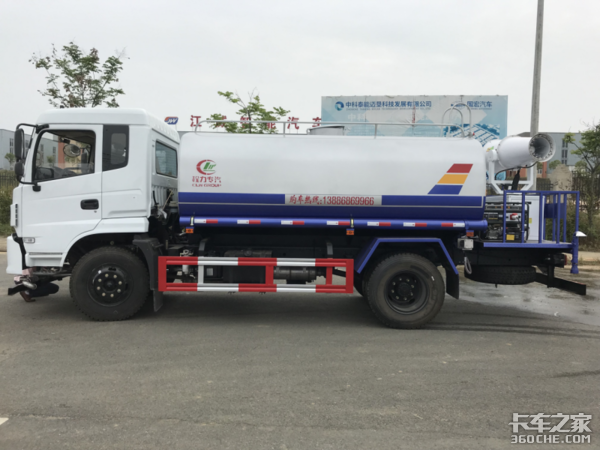 当然,对于一台专用车来说,最重要的还是它的上装部分。这款洒水雾炮车具有前冲、后洒、高压水泡三个功能。其罐体采用5mm厚的优质Q235A碳钢板制作,由电脑自动焊接,采用烤漆工艺。另外还搭配了随州亿丰80QZ-60/90车载洒水泵。
