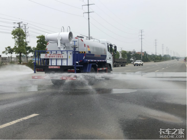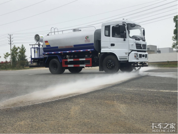 不同于前面的“清洗功能”,车尾部主要是“洒水”,水压相对更低,主要是保持路面湿润,防止尘土被风吹入空气中。