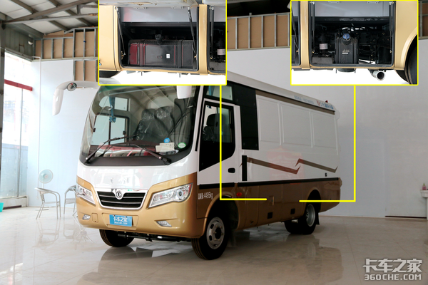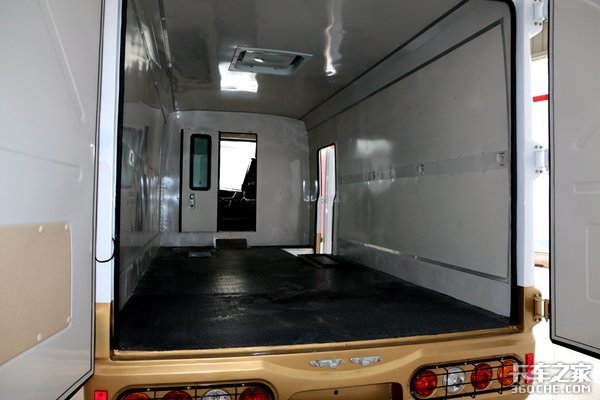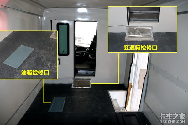 由于是一体式车身,因此货厢内部预留了油箱和变速箱的检修口,方便后期的维修。