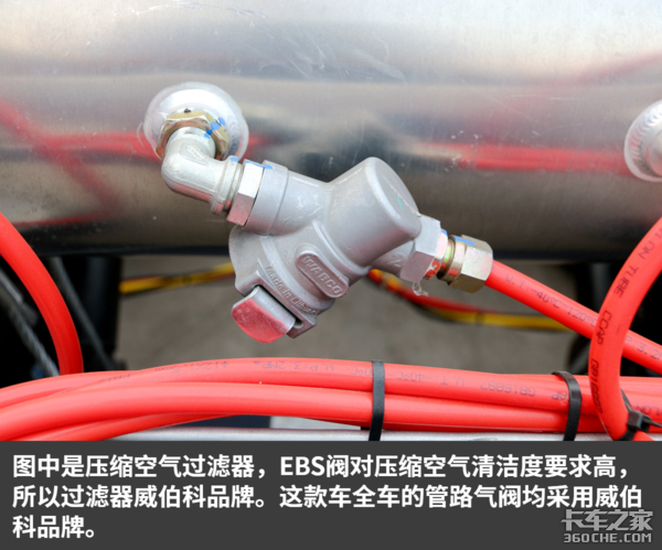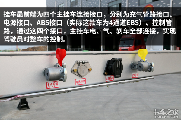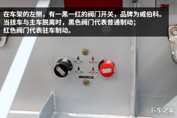 这种挂车跑甩挂的概率非常高,一般需要挂车单独装货,这时就可以拉起红色阀门拉手刹,装好货,牵引车拖上挂后,可以按下红色阀门松手刹,之后就由主车控制了。