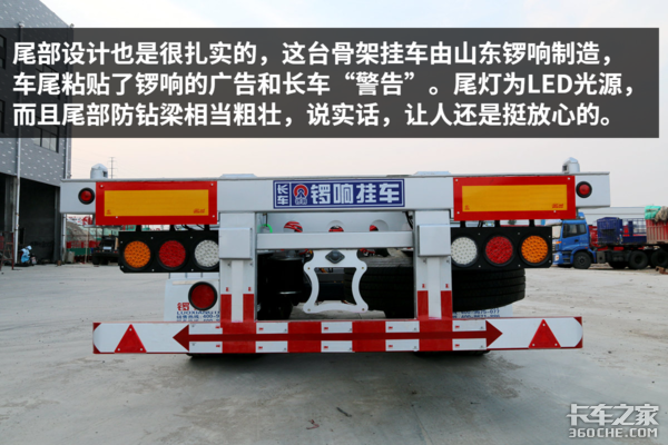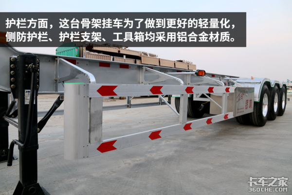 【卡车之家 原创】说到骨架挂车,我们总能把它和沿海港口的集装箱运输联系在一起,那些挂车主要跑短途转运,主打性价比,所以配置方面也很基础,就是非常普通的挂车。