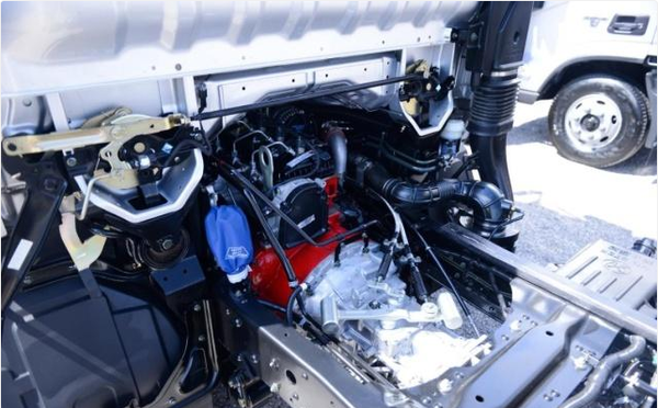 发动机使用了康明斯的ISF2.8s5129T发动机,发动机功率为129马力,最大扭矩为300N.m,排放标准满足国5。与该发动机匹配的是万里扬WLY5G40五挡手动变速箱,该变速箱最高挡位为超速挡,速比为0.79。