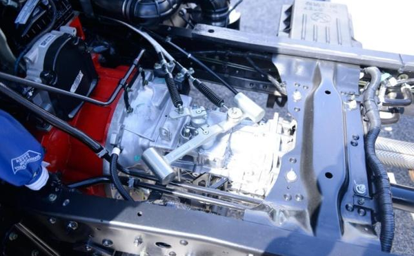 变速箱上面带有非常大的惯性摆锤,是为了增强换挡成功的吸入感。其实欧马可S1也可以选装“超级动力链”,搭载的则是采埃孚5 S400手动变速箱。