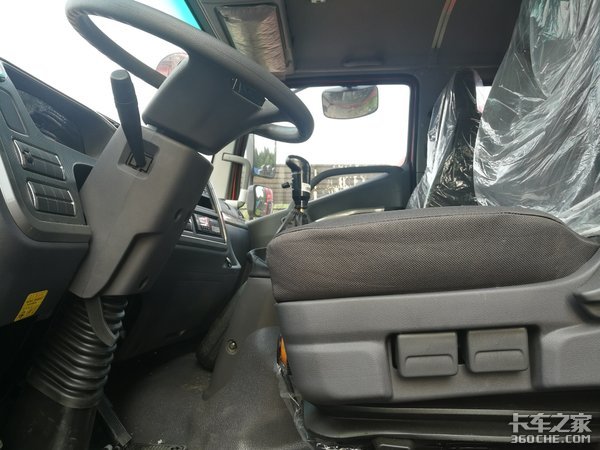 舒适性设计体现,如宽敞的驾驶室空间;可调节气囊减震座椅;驾驶室采用两点悬浮减震;车门采用双通道密封设计,隔噪密封效果好;电动车窗等。