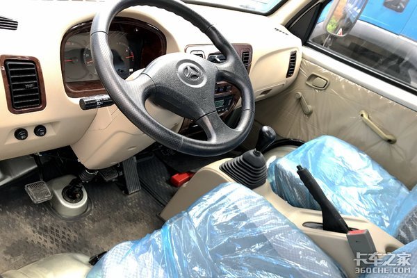 中控部分、仪表盘四周、以及空调出风口都采用的是木纹板的装饰条,让整个内饰变的更加有格调。标配空调也可以让炎热的夏季运输路不那么难熬。