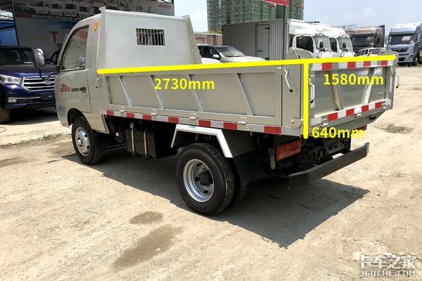 上装方面,这款车的整车长度为4530x1750x2100(mm),货箱长度为2730x1580x640(mm),自卸式的货箱适用于散料、工程运输等。