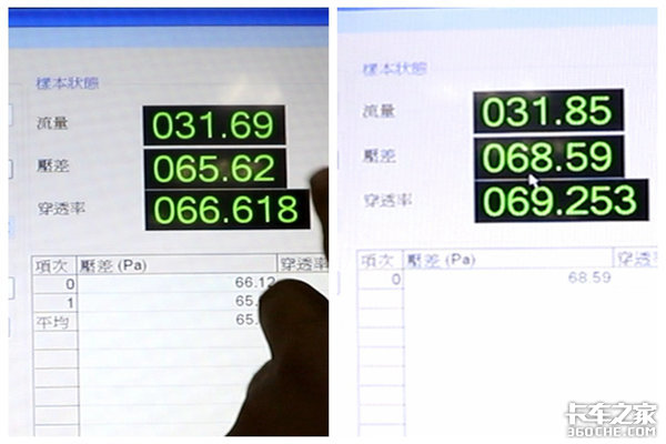 经过了前两轮的测试,这三款纳米空滤的质量差异已经十分明显了,但是光通过实践还是不太具有说服力,配合上数据才是硬道理。