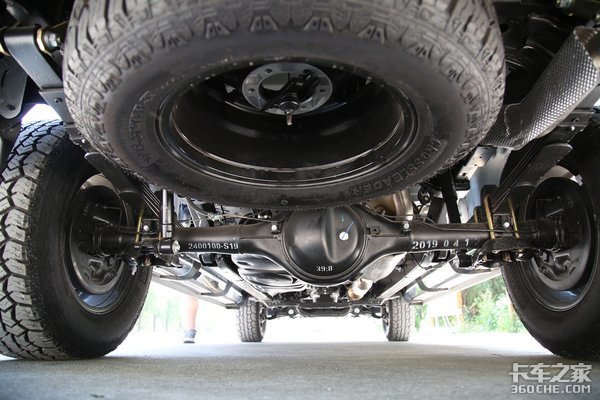 为什么会配这么大的轮胎呢?首先是满足大尺寸的要求,这么大的皮卡,你不给配一个大尺寸的轮胎,看上去气势就差了一些。再者,也是最重要的,为了提升通过性,比如在碎石子路面,或者是路况稍差的野外,这么大尺寸的轮胎,也可以提升一定的越野性能,不怕陷车。