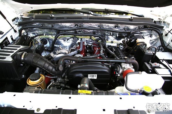 有了大轮胎,还得有强劲的动力,目前N7有两种动力可选,我们实拍的白色车型搭载的是4K22D4T的汽油发动机,排量为2.378L,最大输出218马力,最大扭矩320牛米。另外改装版本的车型搭载的是JE4D25Q5A柴油发动机,排量为2.5L,最大输出129马力,最大扭矩320牛米。