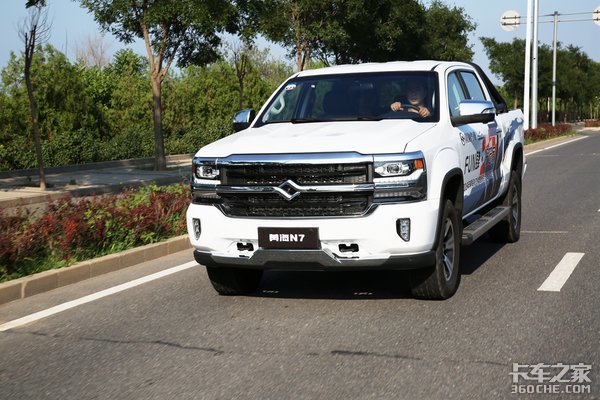 从外观上来看,N7的车头部分非常大,而且比较高,整个前脸比较平,再加上整个底盘也比较高,所以整车看起来比较大气,这也是N7最像美式大皮卡的地方。
