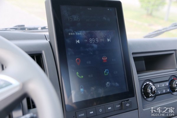 车辆所搭载的中控屏尺寸达到了10.4寸,系统源自于江淮乘用车,且根据轻卡进行专门的定制开发。中控屏幕上集成了导航、影音娱乐、倒车影像、车辆信息等功能;司机还可以将自己的手机投屏到屏幕上面,降低行车过程当中查看手机带来的风险。