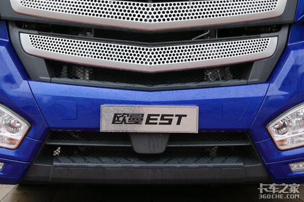 先来说颜色,EST穿越版使用了深蓝色调,匹配一些快递公司也较为合适。EST穿越版从外观上看,与国五车型保持一致,使用了平地板驾驶室的EST穿越版外观上与凸地板最大区别就是进气格栅位置使用了四条金属格栅,使车头看上去更高大威猛。
