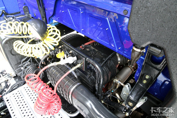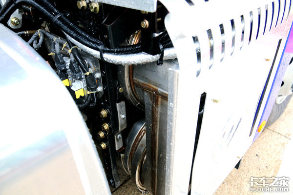 车尾还可以看到,电瓶和储气筒的位置也进行了改变,车身两侧的空间都留给了油箱,将电瓶和储气筒挪至了车架尾部,这样布局也更合理,一切以实用为主。