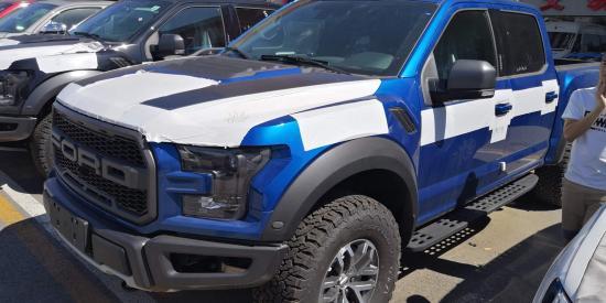 还有一个野性十足的地方是发动机舱盖上的两个散热口,和进气格栅也是同样颜色。福特猛禽血统纯正,拥有了无与伦比的车身刚度,整体车身肌肉感十足,威慑力表现的淋漓尽致。