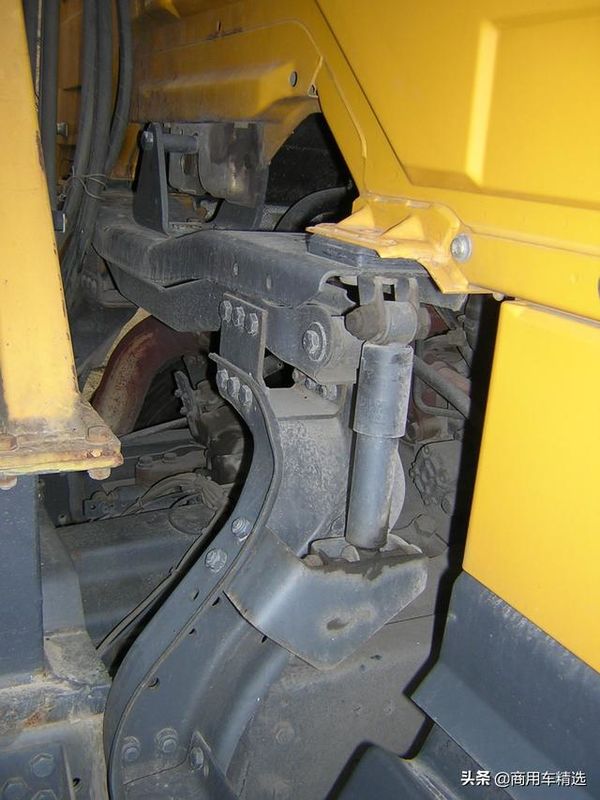 驾驶室减震用今天的眼光来看实在是太简单了,没有螺旋弹簧,没有空气弹簧,仅仅是用一根减震筒。