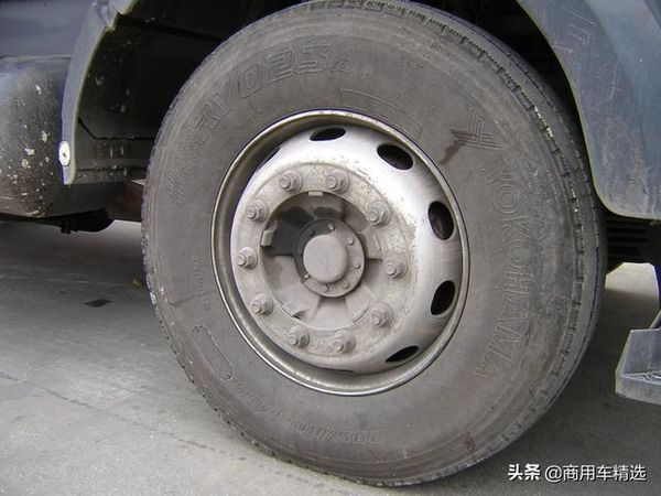 从轮胎的宽度就能够很轻易的看出这两根加装的承重桥,因为原车轮胎尺寸都是295/80 R22.5,然而承重桥却是使用的385/65 R22.5的轮胎。