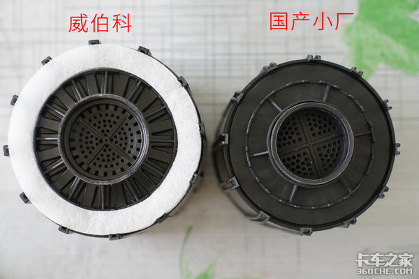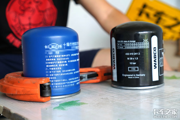 这次我们的实验对象有两款,一款路边店购买的国产小厂空气干燥罐,售价为59元。另一款是国际品牌威伯科的空气干燥罐。这款威伯科空气干燥罐为黑罐,是目前各大主机厂的原厂配套件,与白罐品质保持一致。