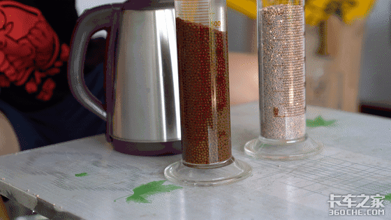 咱们再测试一下它们的滤水性能,正常的空气干燥罐在使用时并不会发生与水直接接触的极端情况。但为效果更直观,我们各取500立方厘米的干燥剂,直接向量筒内倒水看看它们会有什么反应。