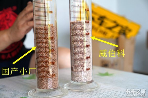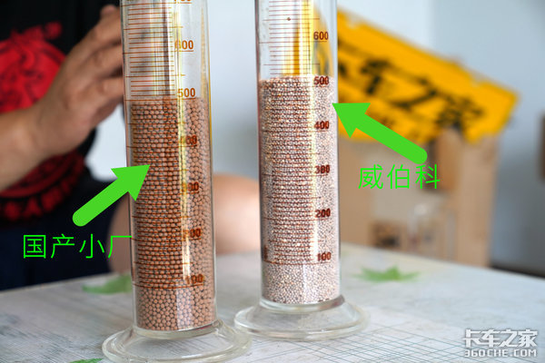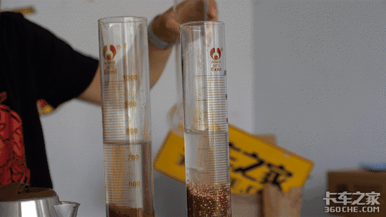 威伯科干燥剂则像是开挂了一样,干燥剂含量已经超出了量程,刚好倒满量筒。