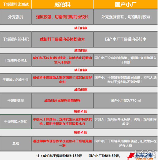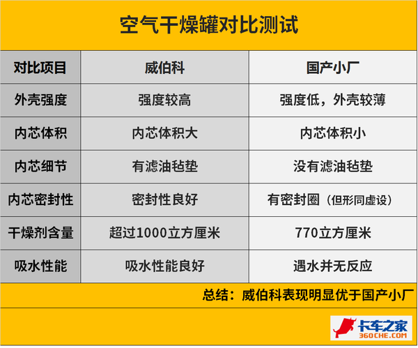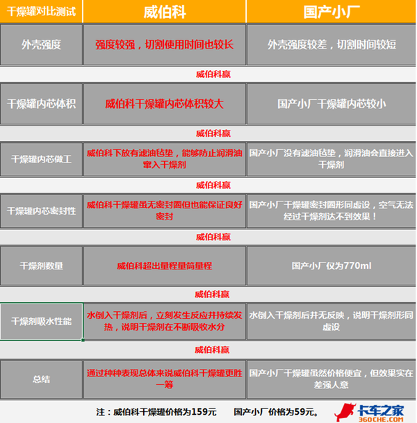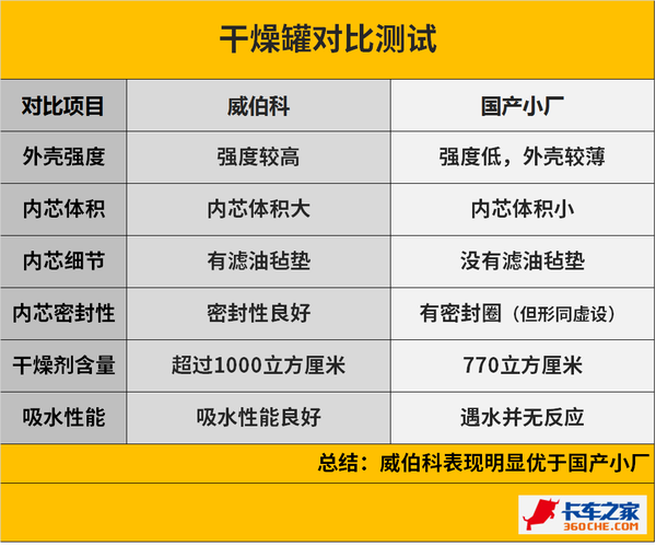 总结一下,国产小厂的干燥剂不光量少,而且滤水性能也等于没有。威伯科的干燥剂不只是量多,滤水效果也显而易见,哪款产品效果更好也就不言而喻了。